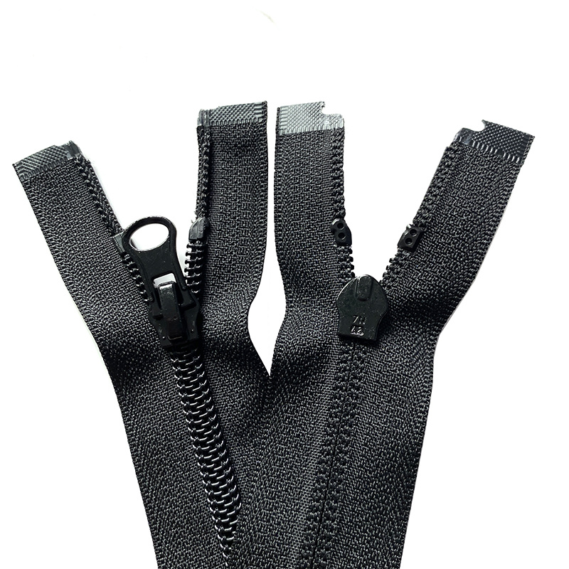 Open-end (separating) zippers have separated ends. The ending part is joined by a box and pin mechanism provided on the lower end of the zipper. The zippers are closed using sliders and are normally used on jackets and other outerwear.